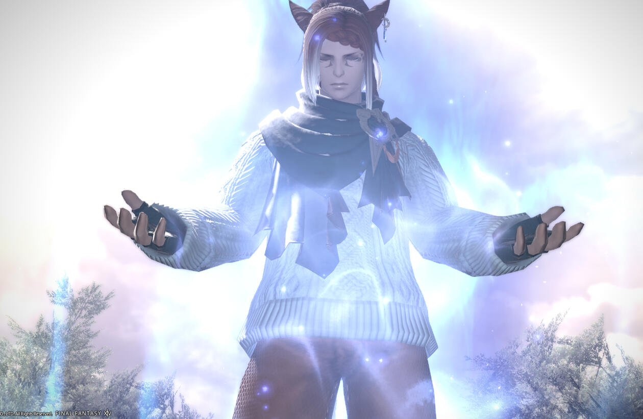 The End Times came, and people once again turned to him, as he'd known they would. This time, though, it did not feel as cumbersome. Poki'a stood amongst those he loved, and declared that as long as he breathed, another adventure was coming for them, and he would not lose them now. He stared down the song of the End, and he sang instead a song of Hope. A song of Love. A song of Life.His song overpowered the End.The Hero of the Star goes by many names as he sings these songs of Life, Love, Hope.Aether Battery. Hydaelyn's Chosen. Warrior of Light. Warrior of Darkness. Godslayer, Primal's Bane, Endbreaker.Poki'a Polaali.